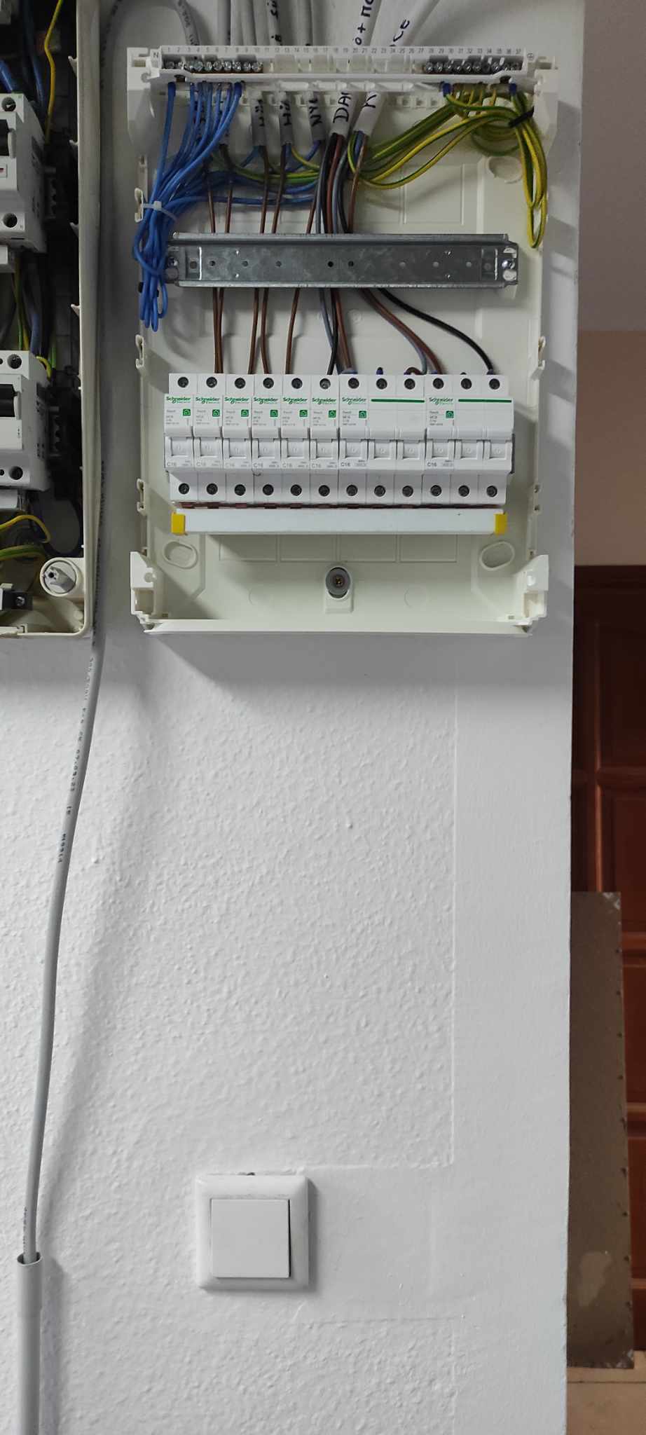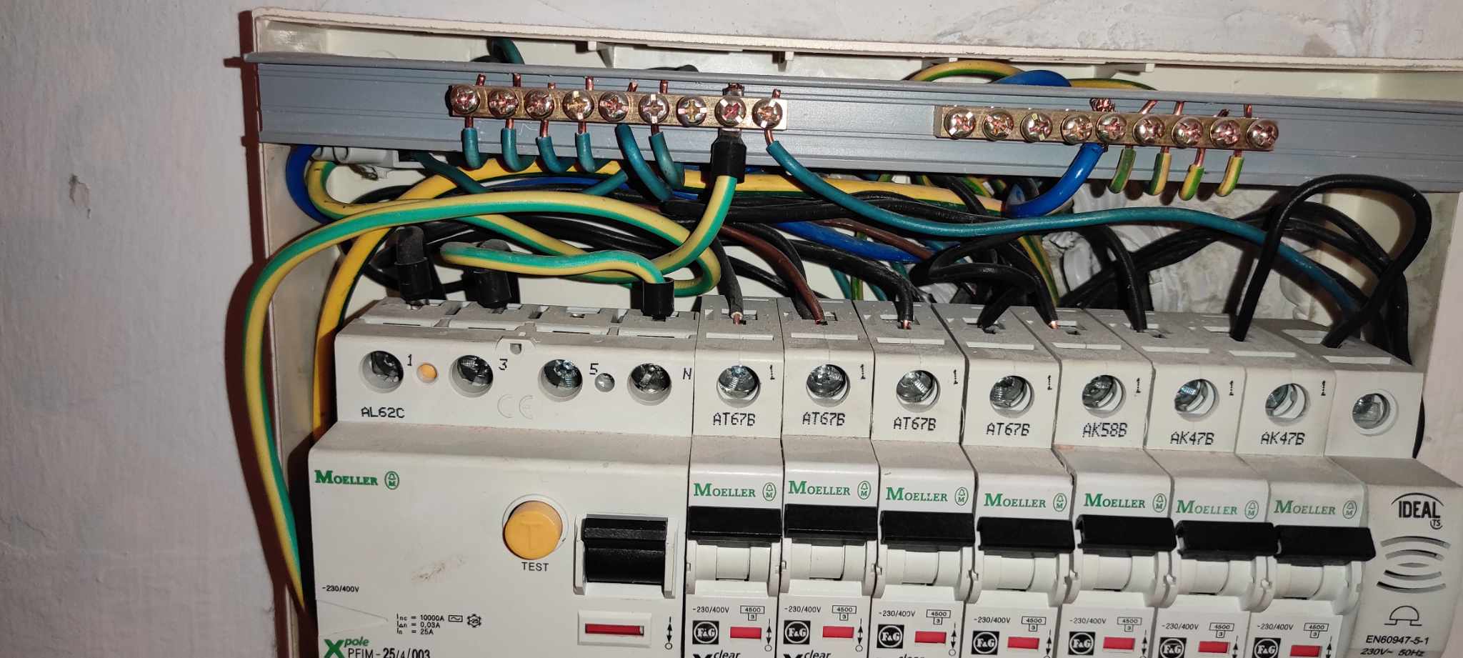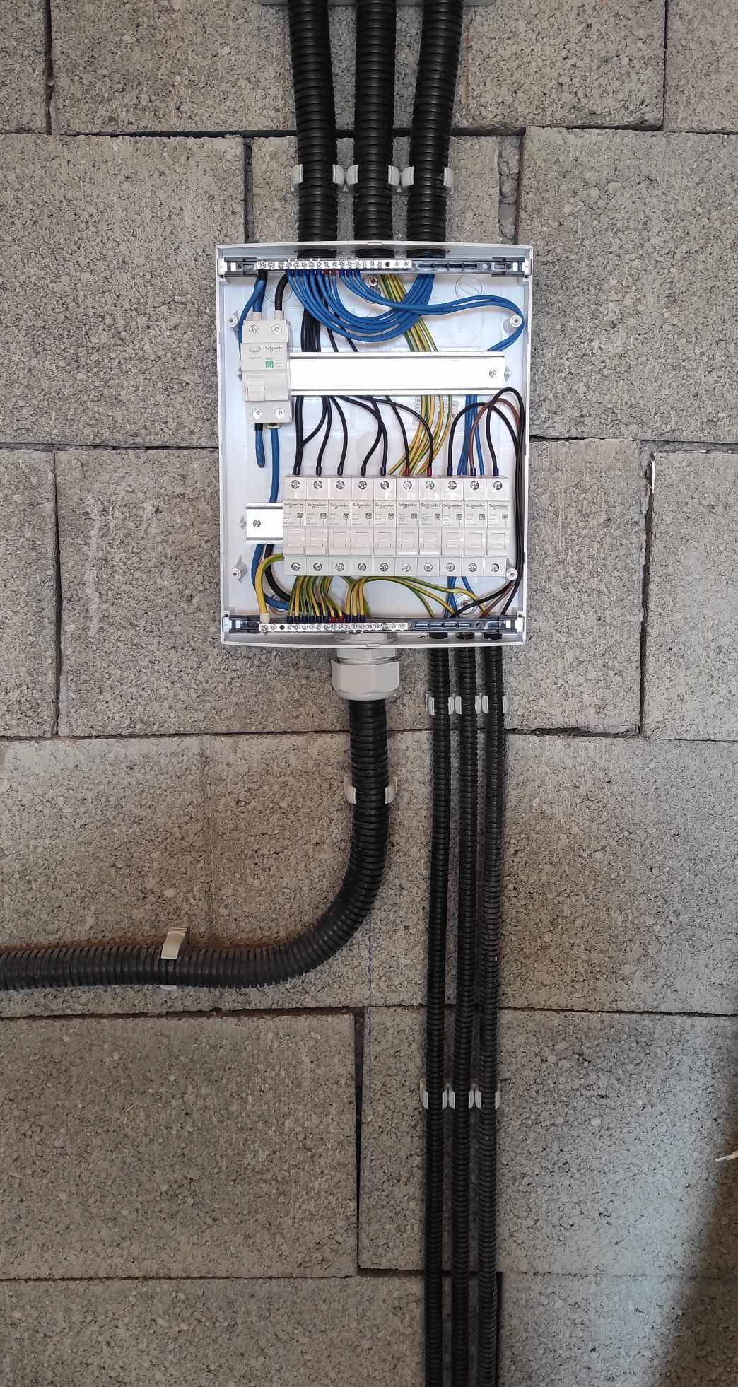 Átvették, de a komplett házat újravezetékeljük a 2. lépésben. Ekkor kerül be a földelés is a házba, és így fi-relét is felszerelünk.