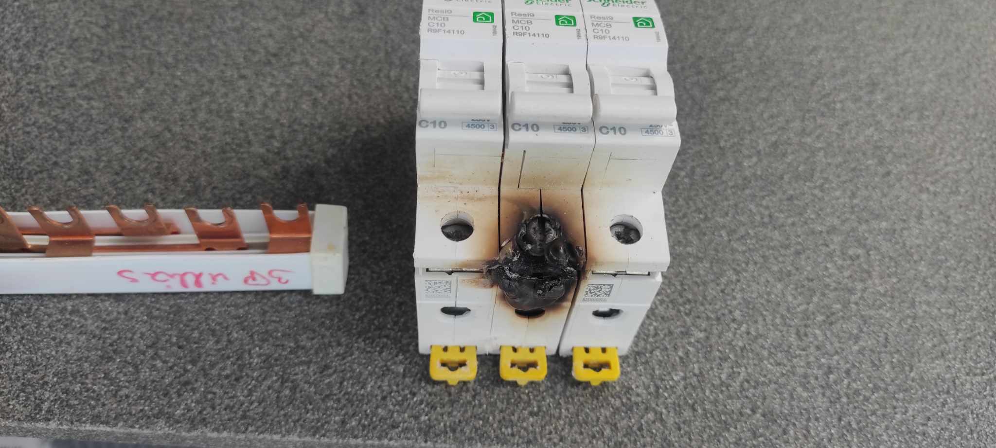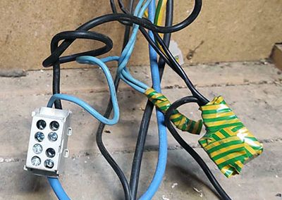 A sorkapcsokba sodrott vezeték csak érvéghüvellyel köthető be. Ez itt it elmaradt… a 3 fázisból, csak kettőt használtak.